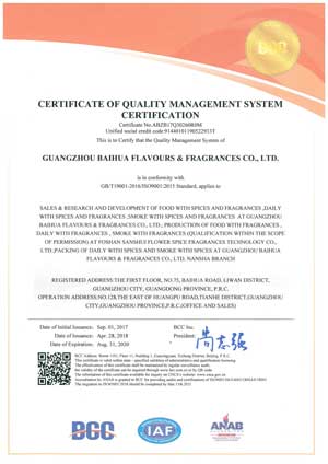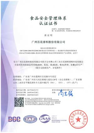 Founded in 1956, after developing and growing for 60 years, G.B.F.F. Co. Ltd. officially became the first integrated manufacturer of flavour and fragrance listing in the National Equities Exchange and Quotations in 2016. Main products include the brand “Guangzhou”, which has won such honors as the Guangdong Top Brand, Guangdong Famous Trademark, Guangzhou Famous Trademark and Guangzhou Time-honored Brand. G.B.F.F. Co. Ltd. organizes the design, development, production and service in strict accordance with ISO22000 and ISO9001 quality systems and has reached an international advanced level. Its products sell well nationwide and are exported to other countries including Japan, the US, France and Southeast Asia and regions such as Taiwan and Hong Kong. As a high-tech enterprise of Guangdong, G.B.F.F. Co. Ltd. actively develops and manufactures cutting-edge products and is committed to establishing a professional technical service system. It has been granted several invention patents and won several awards such as the Guangdong Science and Technology Award and the High-tech Products Award. Meanwhile, it has established a quality inspection department to fulfill its quality commitment and carried out in-depth researches in such areas as microbial detection. G.B.F.F. Co. Ltd. devoted itself to developing an aromatic, healthy life for customers and making a significant contribution to the prosperity of flavour and fragrance industry in China.