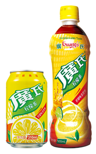廣氏柠檬茶是广州啤酒厂新产品,其特别之处在于:原汁提取,保留最纯正的独特茶涩味,100%真茶+100%真柠檬,柠味清新、激爽怡神。源自传统港式茶餐厅的柠茶风味,冰镇饮用风味更佳。